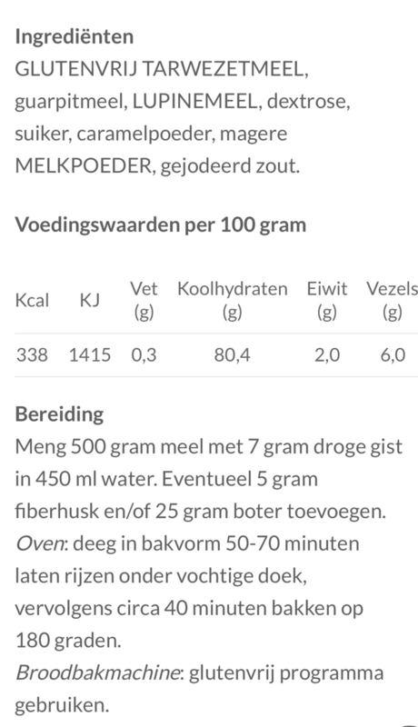 in deze mix zelf nog water, gist en zout toevoegen. Kan in de broodbakmachine op een gluten vrij programma of in de oven